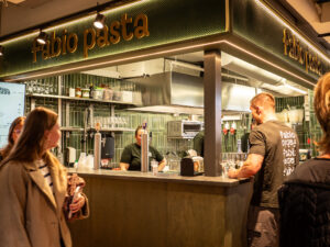 Her finder du et levende madunivers med retter fra hele verden, serveret i afslappede omgivelser midt i SlotsArkaderne. Uanset om du er til italienske klassikere, mexicansk streetfood, japanske specialiteter eller iranske smagsoplevelser, er der noget for enhver smag blandt de syv spændende madsteder.
